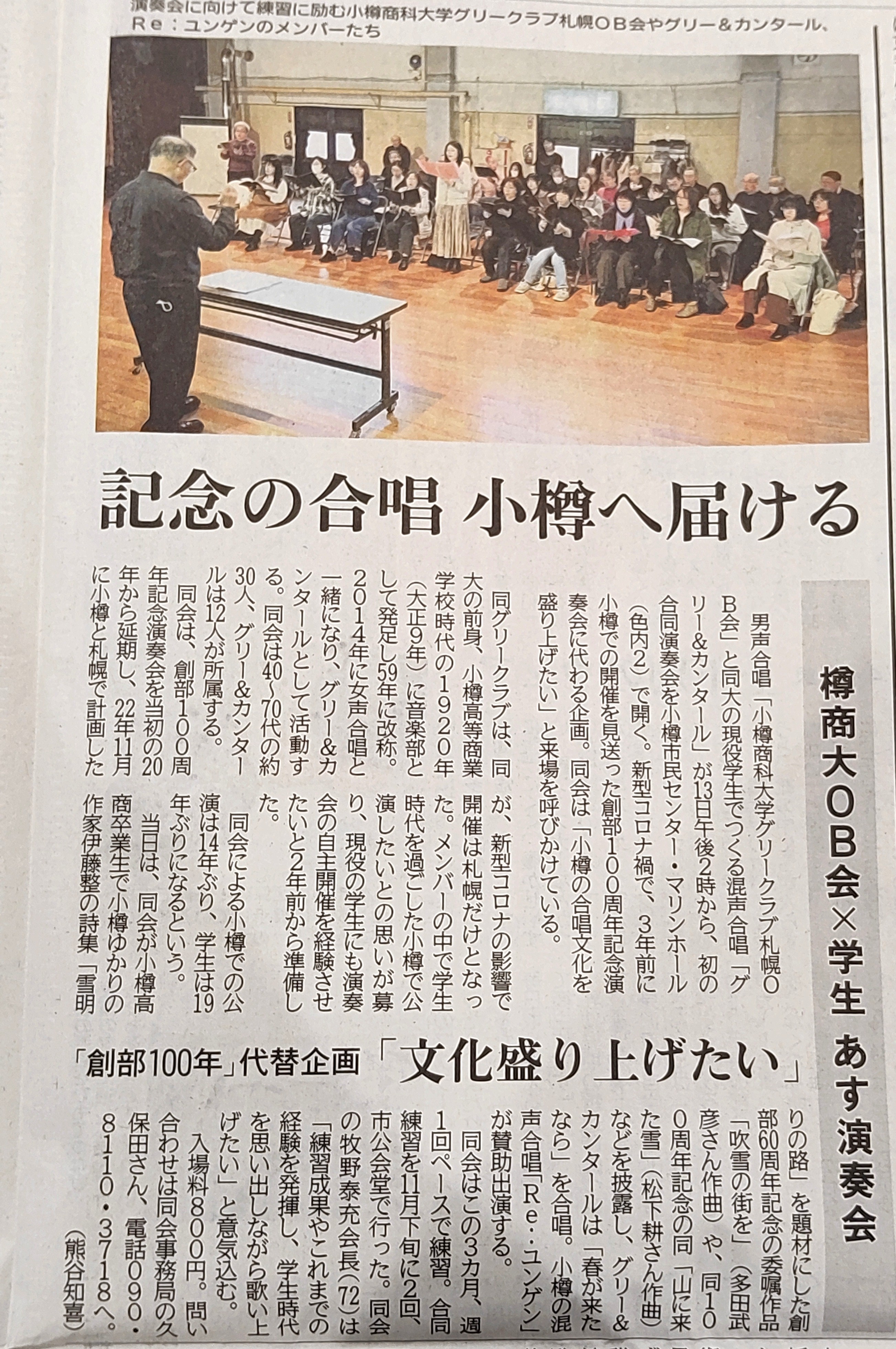 [今日のニュース]記念の合唱 小樽へ届ける