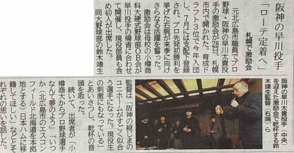 [今日のニュース]阪神の早川投手「ローテ定着へ」札幌で激励会