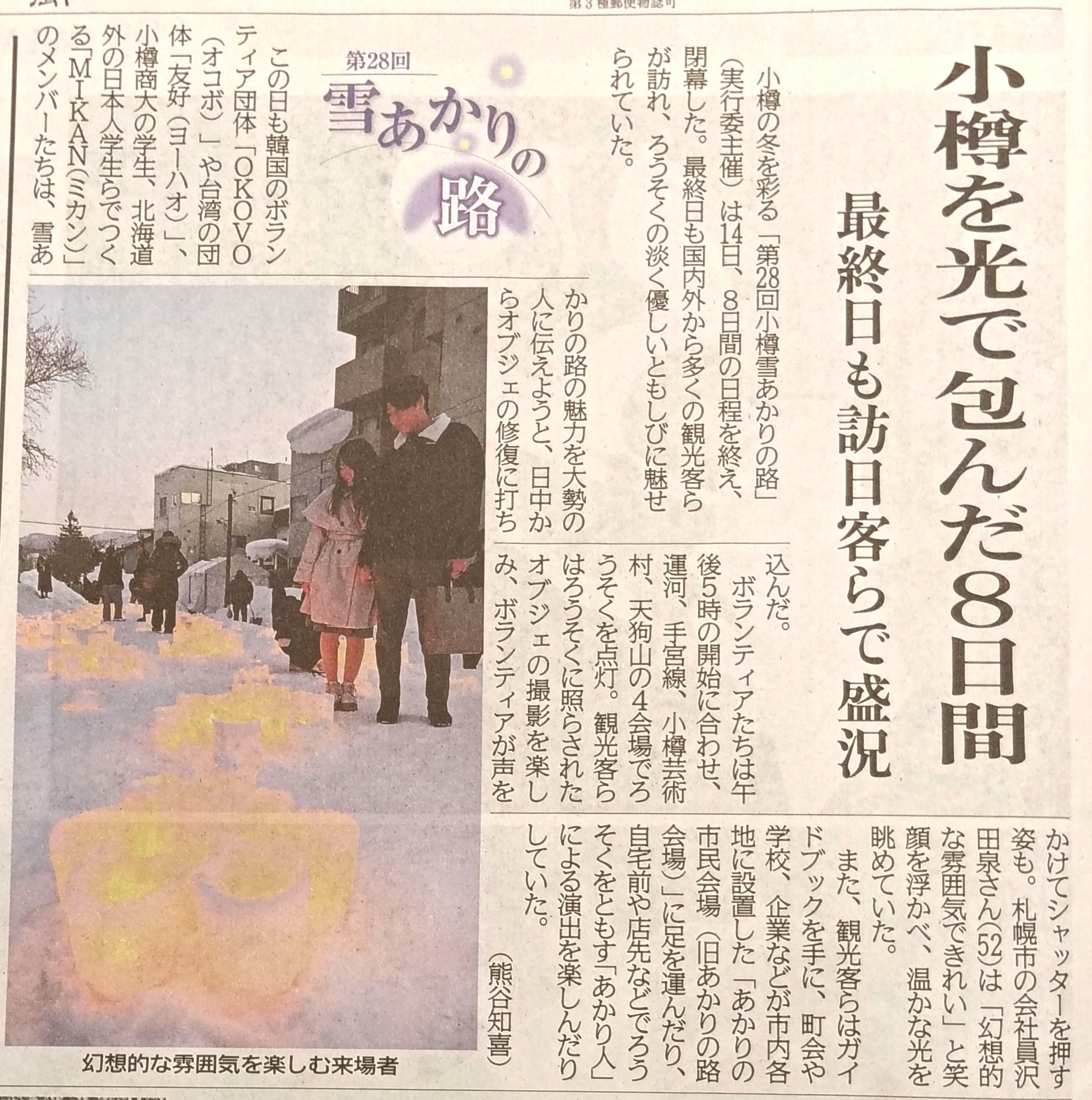 [今日のニュース]「第28回小樽雪あかりの路」は14日、8日間の日程を終え、閉幕した