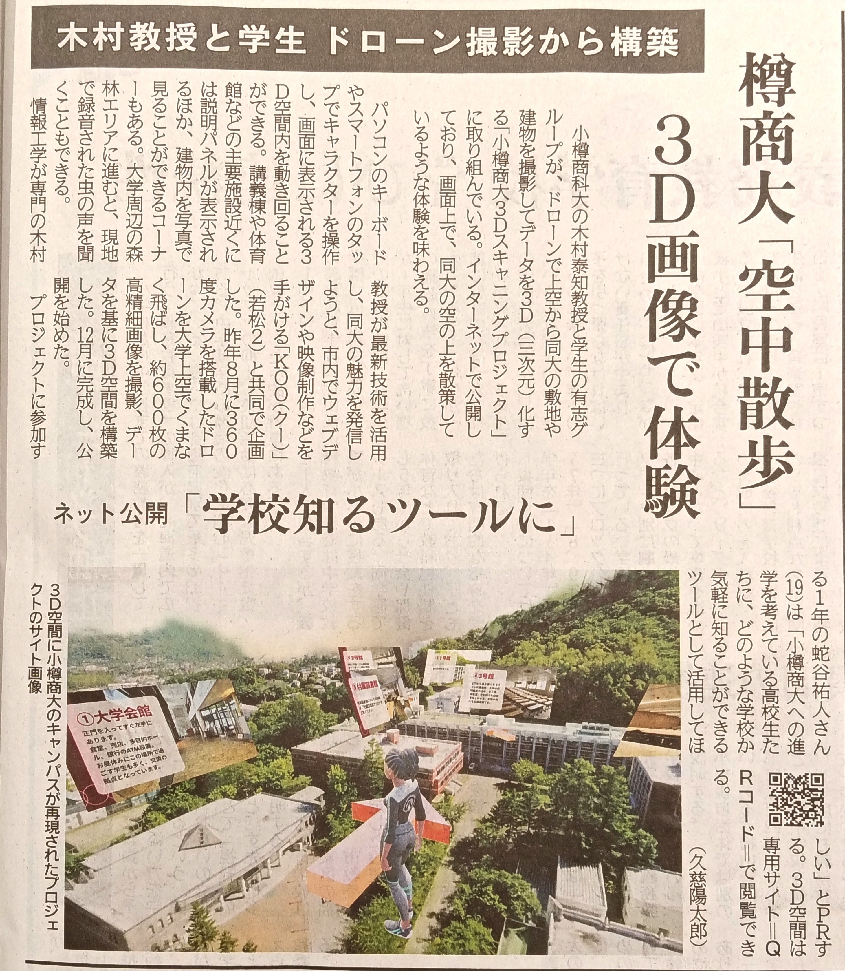 [今日のニュース]樽商大「空中散歩」3D画像で体験